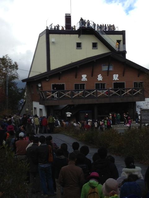 今年の紅葉は遅れているようです。来週には色付き始めるでしょう。ロープーウェイは長蛇の列ですが、101人乗りですから流れはよいです。風は冷たいのでしっかり防寒しましょう。待ち時間は山々の美しさをご観覧下さい。