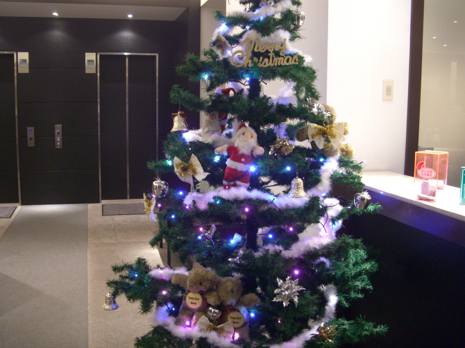 本日スタッフ総出でフロント横にクリスマスツリーを飾りました(^^)