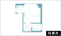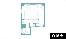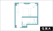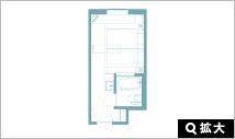 お部屋の面積は18平米で広いお部屋ではありませんが機能的に設計されていています。