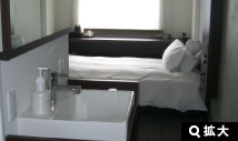 全室にゆったりとした160cm幅のダブルベッドを設置。 洗面台はバスルームから独立していますので、ゆっくりと身だしなみを整えていただくことができます。 バスルームに窓が付いているお部屋と付いていないお部屋がございます。バスルームの窓はお部屋側についています。お部屋に開放感と、お部屋の窓を通して外の景色が見られるようにと設えたものでございます。バスルーム窓のブラインドはお部屋側についていますのでブラインドの開閉はお部屋側での操作になります。お部屋の広さは18平米で1人掛けソファー1脚です。